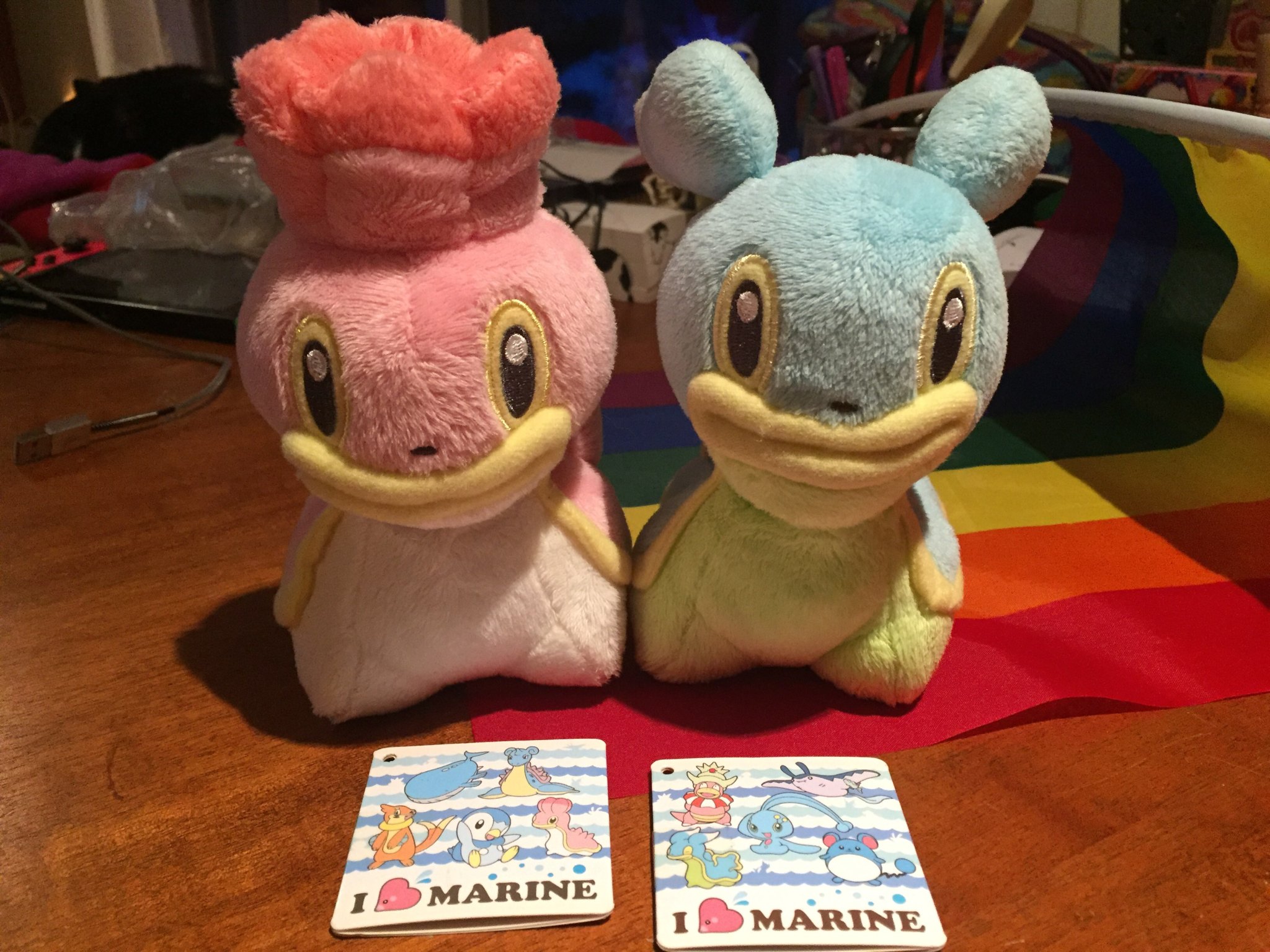 Sweet pastel matching babies! I think the I Love Marine set is amazing, and I'm so glad the Shellos babies were included in it~ Did you know, these were the first Shellos plushes to include their little noses on them? I guess it's not saying much since they only have a total of three plushes at this point, but it's still neat!