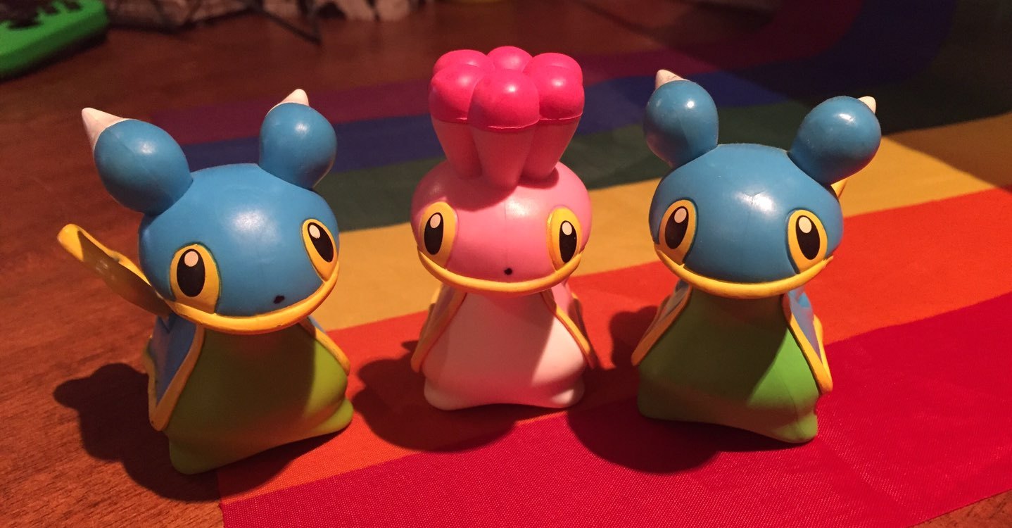 These babies came to me all the way from Japan! These figures were sold alongside beef bowl dishes from the fast food chain restaurant Yoshinoya! It's crazy to me they chose both Gastrodons as options, considering their set consisted of Pokemon like Charizard and Groudon, but I'm so happy they did! Fun fact - they ended up having to temporarily discontinue this promotion at one point because it was TOO popular! I'm sure they were all looking to get their own Gastrodons...