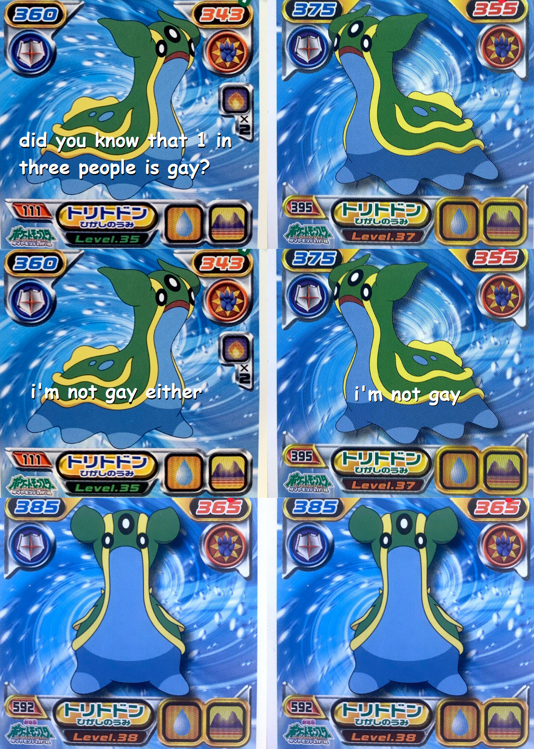 Assorted cards of both Shellos and Gastrodon! All three of the middle cards have been gifted to me by others, and I treasure all of them ;w; The one with the crease in it was given to me by my best friend's younger brother - he traded some of his cards on the playground for it to give it to me! :sob: